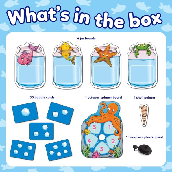 Perfect birthday gift Spin the octopus spinner to see how many fish you can catch, but do take care...there's a shark out there! Spin the spinner, count the number of bubbles and collect the matching cards on your fish board. But watch out! If you turn over a shark card, it will eat all of your fish and you'll have to start again! The player with the most fish at the end of the game is the winner!